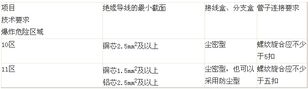 表3.4.5 爆炸性粉塵環(huán)境鋼管配線技術(shù)要求