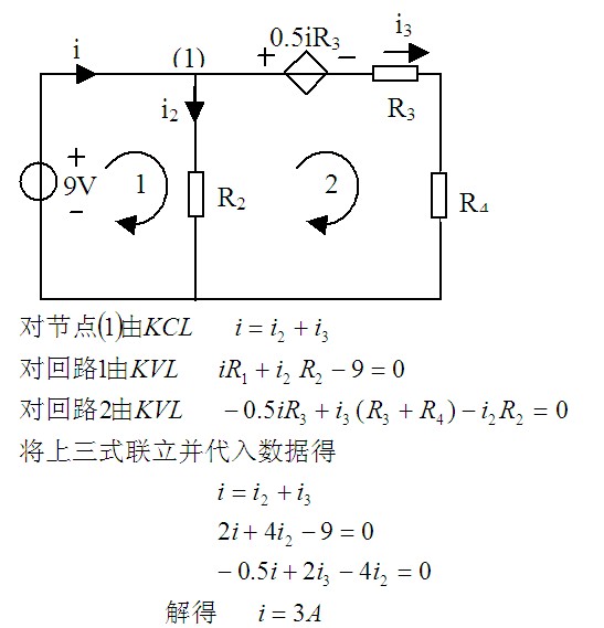 2. 對圖所示電路,已知R1=2Ω,R2=4Ω,R3=R4=1Ω,求電流i。