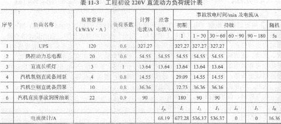 解答過程:直流負(fù)荷統(tǒng)計(jì)表見表11-3。