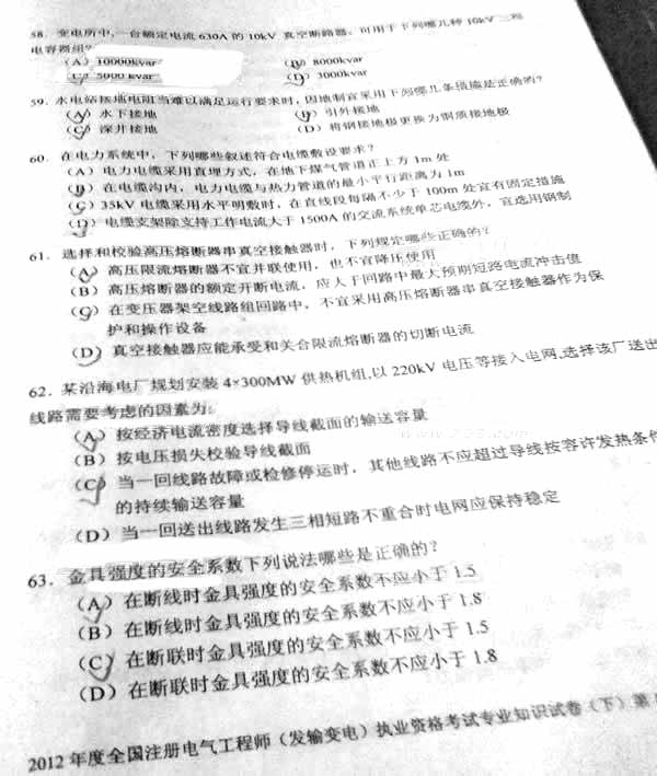 2012年電氣工程師發(fā)輸變電真題(下)4