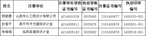 山西:7月份二級(jí)建筑師初始注冊(cè)人員名單公告