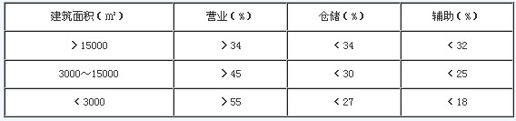 注:①商店建筑,如營業(yè)部分混有大量倉儲面積時,可僅采用其輔助部分配比。