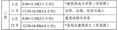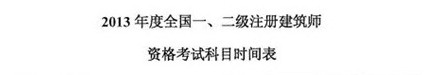 2013年二級(jí)注冊(cè)建筑師考試科目時(shí)間表