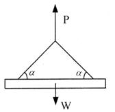2.如圖所示,用吊索起吊重為W的構(gòu)件,兩斜索與構(gòu)件所成的角度為?,吊點(diǎn)對(duì)稱,則斜索內(nèi)力最大時(shí)的角度?為( )。