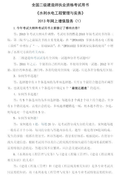 2013年二級(jí)建造師水利實(shí)務(wù)正版教材增值服務(wù)(一)