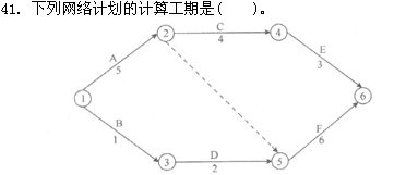 42.某網(wǎng)絡(luò)計(jì)劃中,工作M的最早完成時(shí)間為第8天,最遲完成時(shí)間為第12天,工作的持續(xù)時(shí)間為4天,與所有緊后工作的間隔時(shí)間最小值為2天,則該工作的自由時(shí)差為( )天。