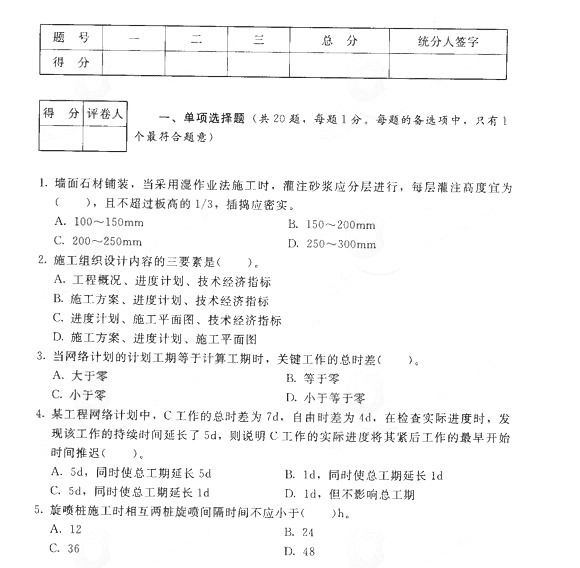 2013年二級建造師《建筑工程》押題卷一(1)