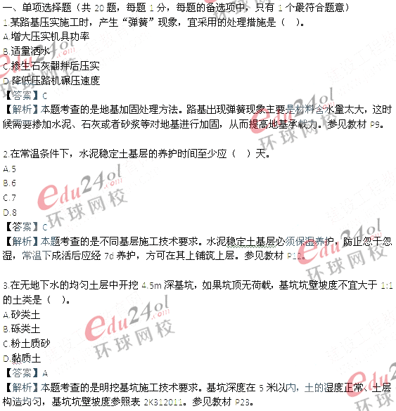 2013年二建《市政工程》真題答案(推薦版)