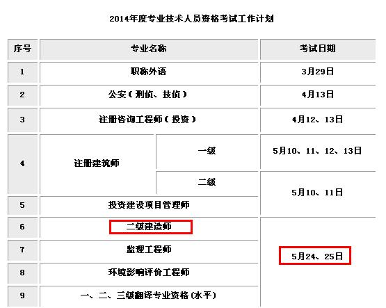 2014年臺州二級建造師考試時間已經(jīng)公布:2014年5月24、25日兩天,請大家提前做好準(zhǔn)備。