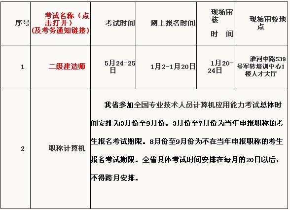 2項專業(yè)技術(shù)資格、執(zhí)業(yè)資格考試報名工作安排一覽表