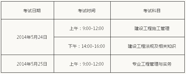 2014年度二級建造師執(zhí)業(yè)資格考試定于5月24日、5月25日舉行。具體考試時間安排如下: