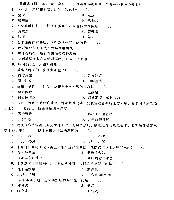 2014二建新教材市政工程實(shí)務(wù)模擬題第二套1