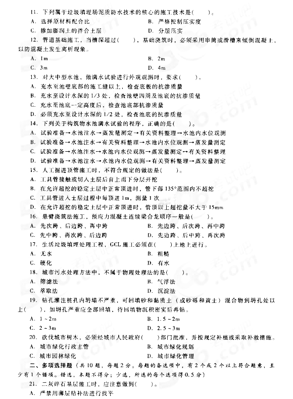2014二建新教材市政工程實務(wù)模擬題第二套2