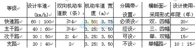 一、城鎮(zhèn)道路分類。分為快速路、主干路、次干路和支路4級(jí)。