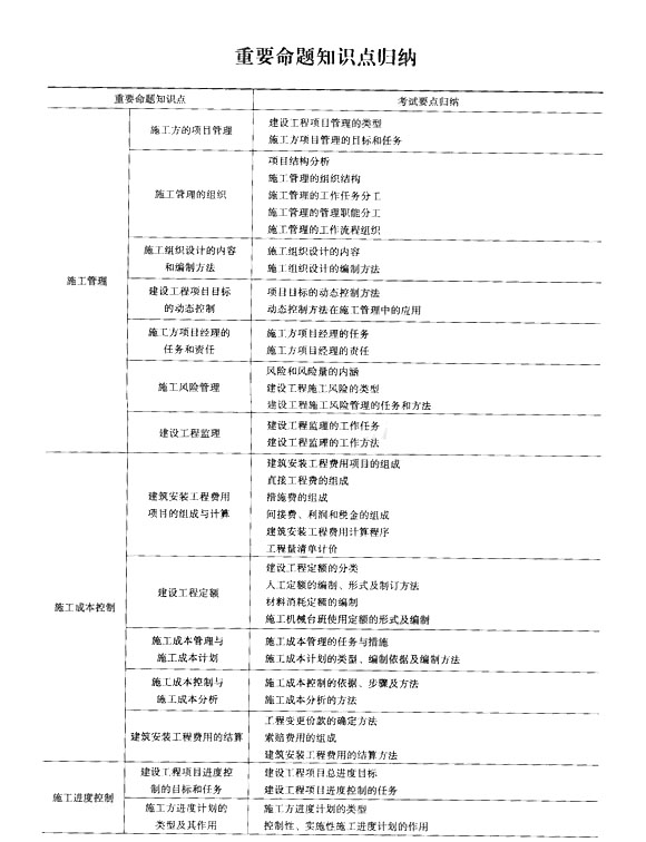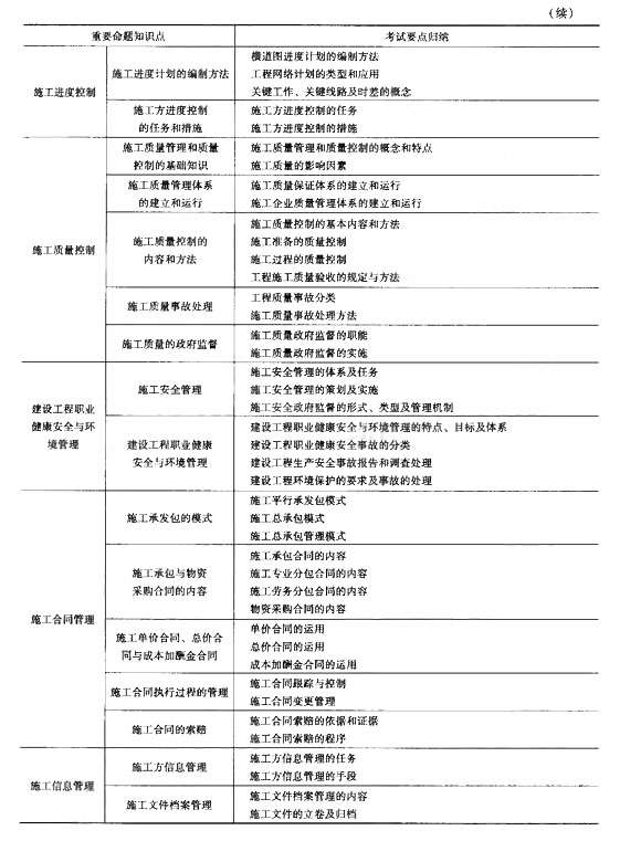 2014二級建造師施工管理考試重點歸納