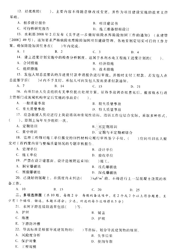 2014二建新教材水利水電實(shí)務(wù)摸底卷2