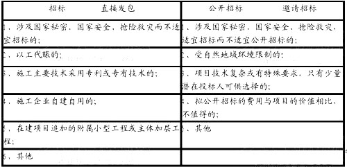(2)可以不招標(biāo)的項(xiàng)目(不宜招標(biāo)---直接發(fā)包)、公開招標(biāo)、邀請招標(biāo)