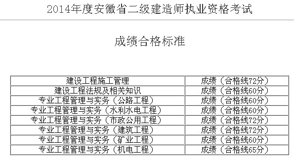 安徽2014年二級(jí)建造師合格標(biāo)準(zhǔn)
