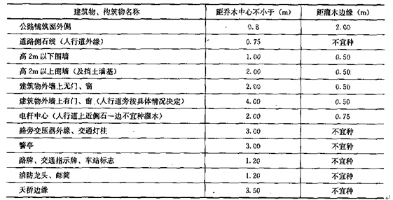 【解析】樹木與建筑、構筑物的平面距離見下表。