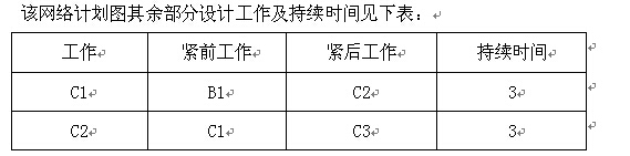1、按背景資料給出的計(jì)劃工作及持續(xù)時(shí)間表補(bǔ)全網(wǎng)絡(luò)計(jì)劃圖的其余部分。(請將背景中的網(wǎng)絡(luò)圖復(fù)制到答題紙上作答,在試卷上作答無效)。