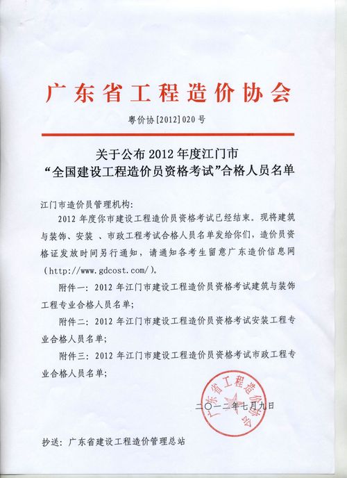摘要 江門(mén)2012造價(jià)員考試合格人員名單如下,望廣大考生及時(shí)查詢(xún)。