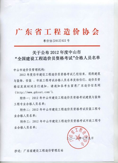 中山2012年造價員考試合格人員名單
