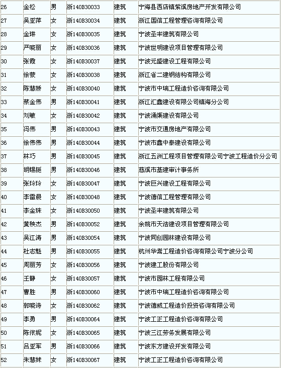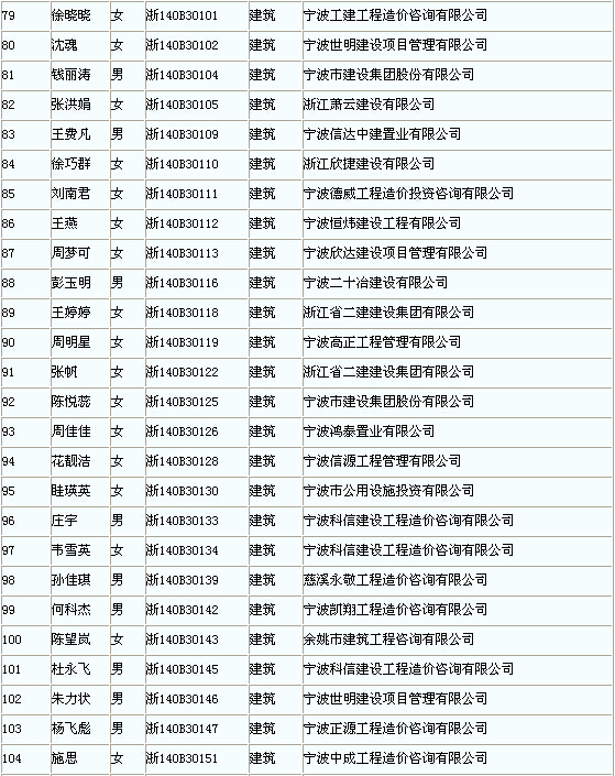 2014年寧波市造價(jià)員考試合格人員領(lǐng)取證章名單