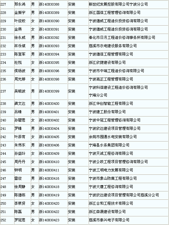 寧波市2014年度造價(jià)員從業(yè)登記合格人員領(lǐng)取證章名單