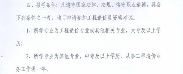 2015年河南省造價員考試報名條件