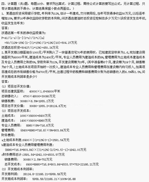 2009年房地產(chǎn)估價師開發(fā)經(jīng)營與管理全真試題8