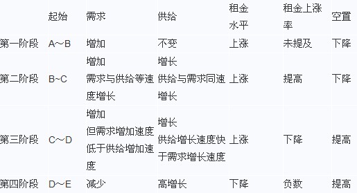 該階段不存在供給過剩,租金停止上漲,開工項(xiàng)目少,但竣工項(xiàng)目多
