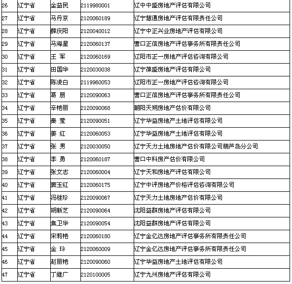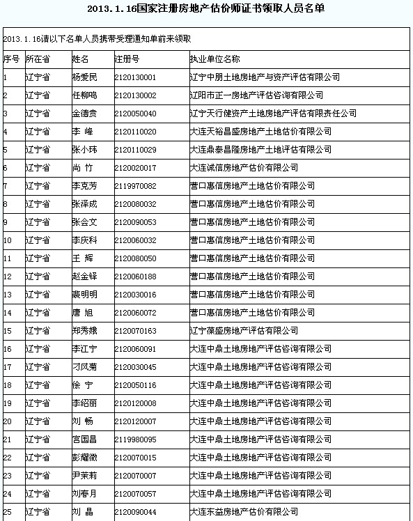 遼寧房地產(chǎn)估價師證書領取人員名單(2013.1.16)