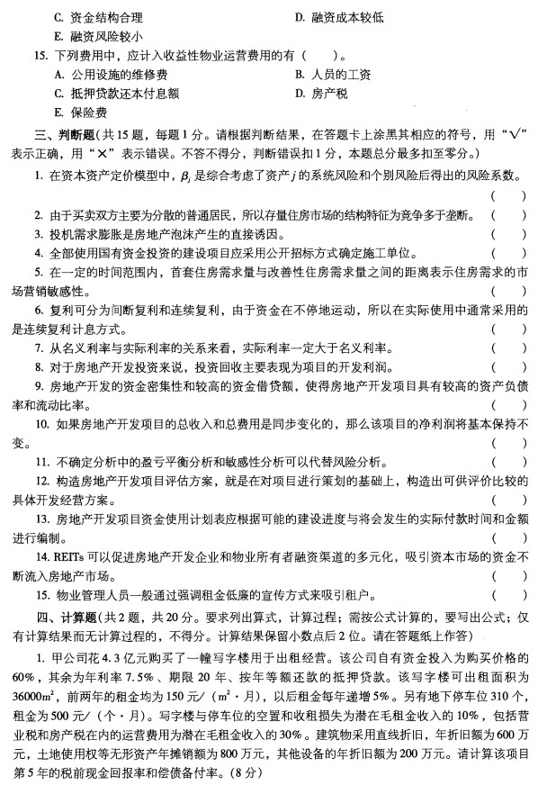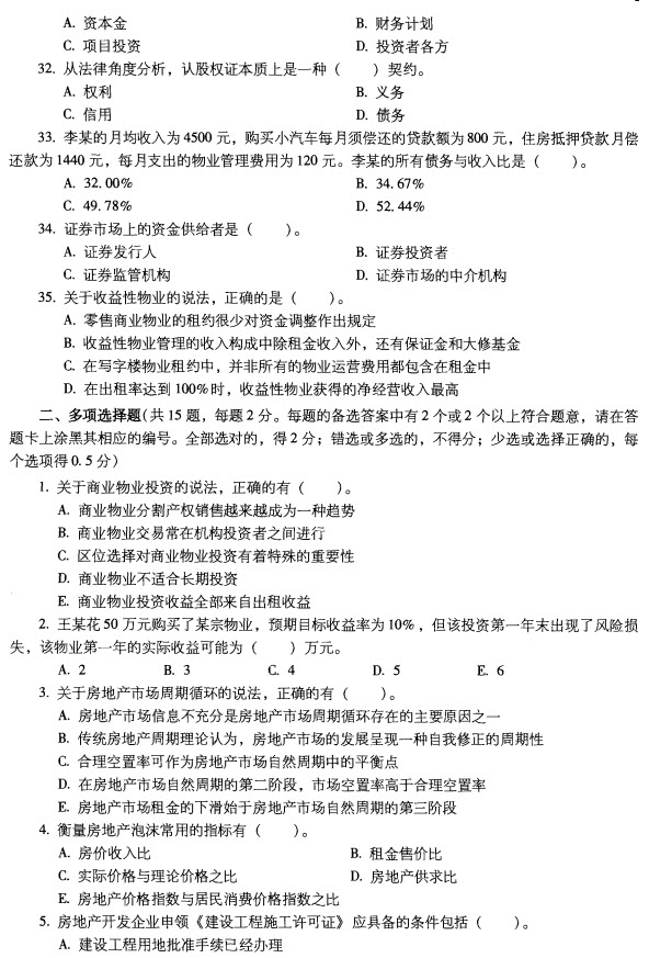 2012年房地產(chǎn)估價(jià)師《經(jīng)營與管理》真題(完整版)