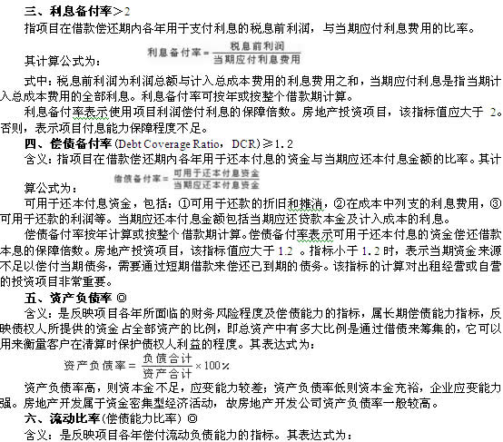 2014年房地產(chǎn)估價(jià)師《經(jīng)營與管理》考點(diǎn):清償能力指標(biāo)及其計(jì)算