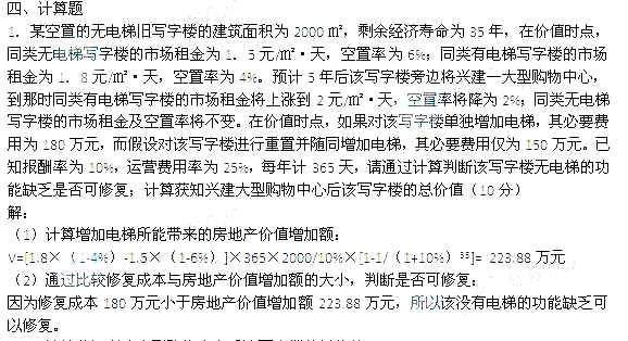 (3)計(jì)算獲知興建大型購物中心后該寫字樓的總價值: