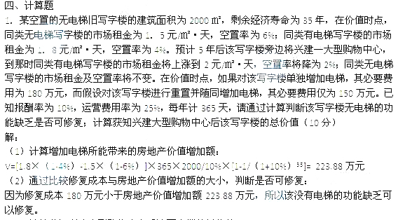獲知興建大型購物中心后V=77.2/10%×[1-1/(1+10%)30]/(1+10%)5=451.88萬元。
