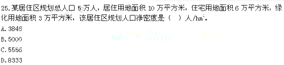 【解析】本題考查的是人口凈密度的計(jì)算。人口凈密度=規(guī)劃總?cè)丝?住宅用地面積。