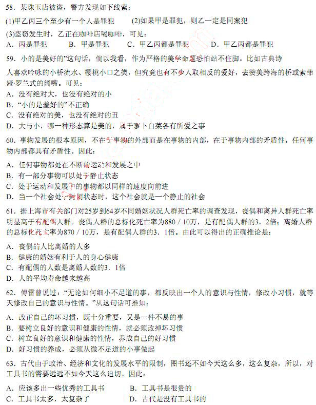 09年公務(wù)員考試《行測(cè)》判斷推理模擬試卷