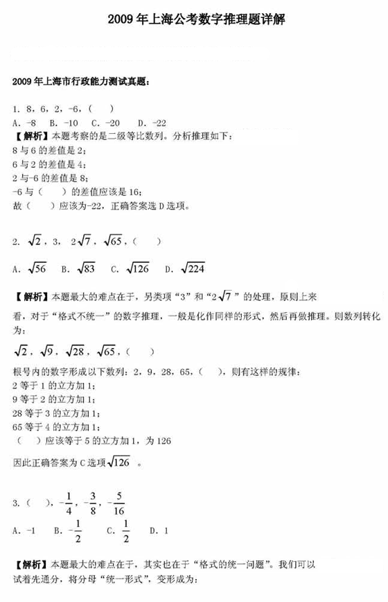 上海2009年公務(wù)員考試行測數(shù)字推理題詳解