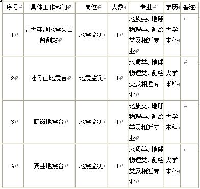 根據(jù)事業(yè)單位公開招聘的有關規(guī)定和事業(yè)發(fā)展的需要,黑龍江省地震局部分臺站2009年公開招聘應屆畢業(yè)生4名: