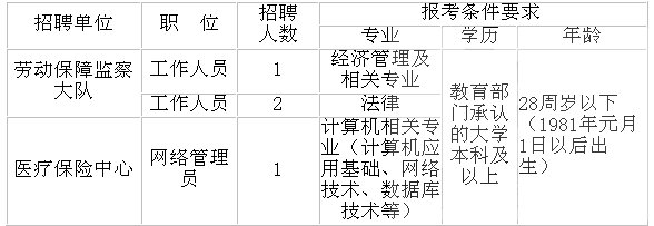 根據(jù)《蕪湖市事業(yè)單位新進人員招聘辦法》規(guī)定,經(jīng)縣編委會批準,同意縣勞動保障局下屬事業(yè)單位面向社會公開招聘4名工作人員,具體如下: