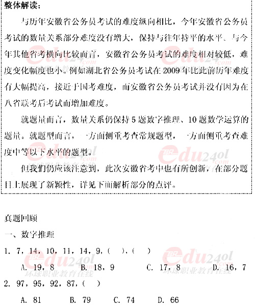 安徽2009公務(wù)員考試行測數(shù)量關(guān)系真題及解析
