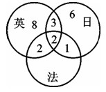 外語學(xué)校有英語、法語、日語教師共27人,其中只能教英語的有8人,只能教日語的有6人,能教英、日語的有5人,能教法、日語的有3人,能教英、法語的有4人,三種都能教的有2人,則只能教法語的有( )。