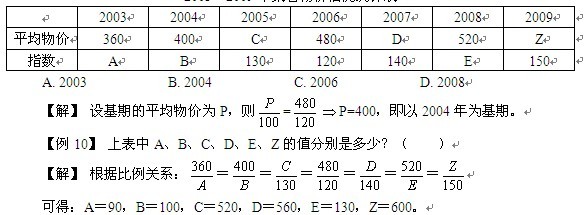 【例9】 根據(jù)下表,基期可能為下述年份中的哪一年?( )