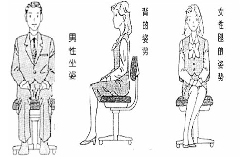男女坐姿的最大區(qū)別在腿的擺放上,男性兩腿自然呈90°彎曲,膝蓋以下垂直地面,兩腿宜分開,但寬度以不超過雙肩為宜。女性應(yīng)注意雙腿并攏,兩腳平列或前后稍稍分開。