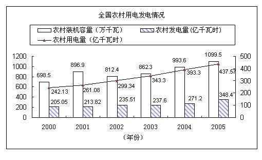 2、根據(jù)上圖,下列關(guān)于我國(guó)農(nóng)村用電發(fā)電情況的表述,錯(cuò)誤的一項(xiàng)是( )。