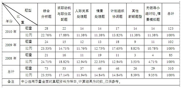 2008年――2010年云南省錄用公務(wù)員面試試題統(tǒng)計表