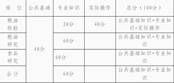 筆試分公共基礎(chǔ)知識(占筆試成績的40%)和專業(yè)測試(占筆試成績的60%,糧油檢驗(yàn)崗位加考實(shí)際操作)兩部份。筆試成績設(shè)最低分?jǐn)?shù)控制線50分,低于50分者不得參加面試。