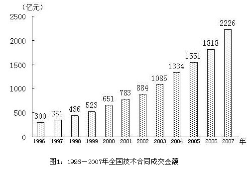 圖1:1996-2007年全國技術(shù)合同成交金額