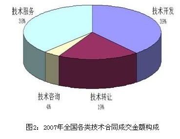 圖2:2007年全國各類技術(shù)合同成交金額構(gòu)成
